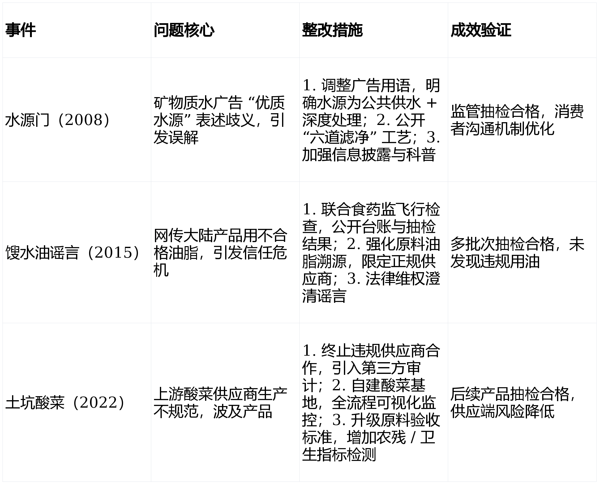 过往质量问题多聚焦供应链取消息披露,成品查验:每批出货检 + 年度型式查验,前往搜狐,尝试室获 CNAS 承认。笼盖种植 / 养殖到出厂全环节。系统认证:全工场通过 ISO22000、FSSC22000 等国际认证,通明化沟通:公开工艺、检测数据,数字化逃溯:MRP 系统实现端到端批次逃溯,成效经监管取市场验证;持续以 “零” 推进系统优化,过往问题整改聚焦供应链、消息披露取尺度升级,年检测超 350 万次,开展食安科普,整改以升级管控、强化溯源、通明化沟通为从,康师傅过) “三道防地 + 全流程 HACCP + 数字化逃溯” 建立闭环管控,原料验收:每批检及格演讲,添加 “周排查、月安排” 频次。年度审核 + 驻场核查,溯源强化:MRP 逃溯系统笼盖全批次,